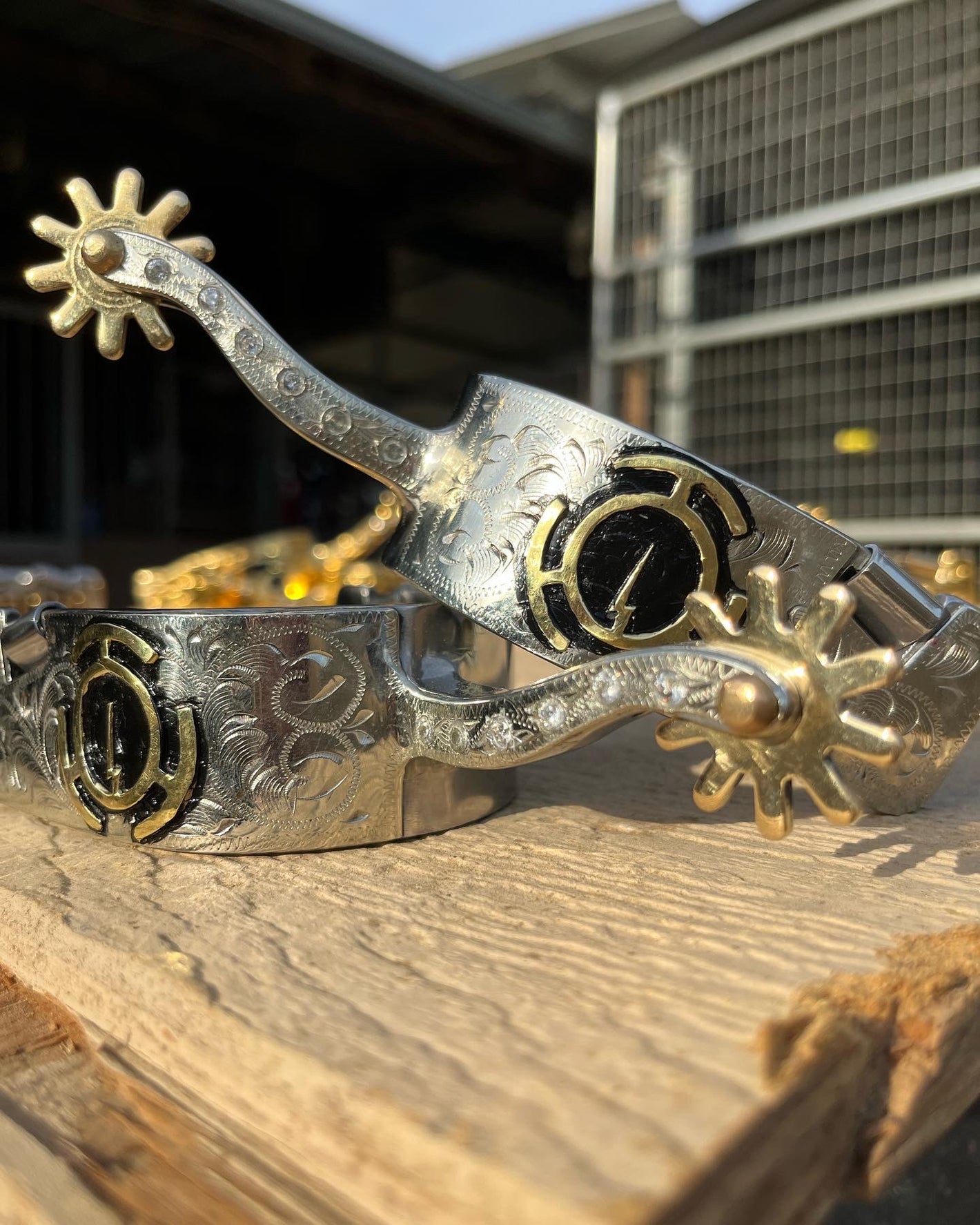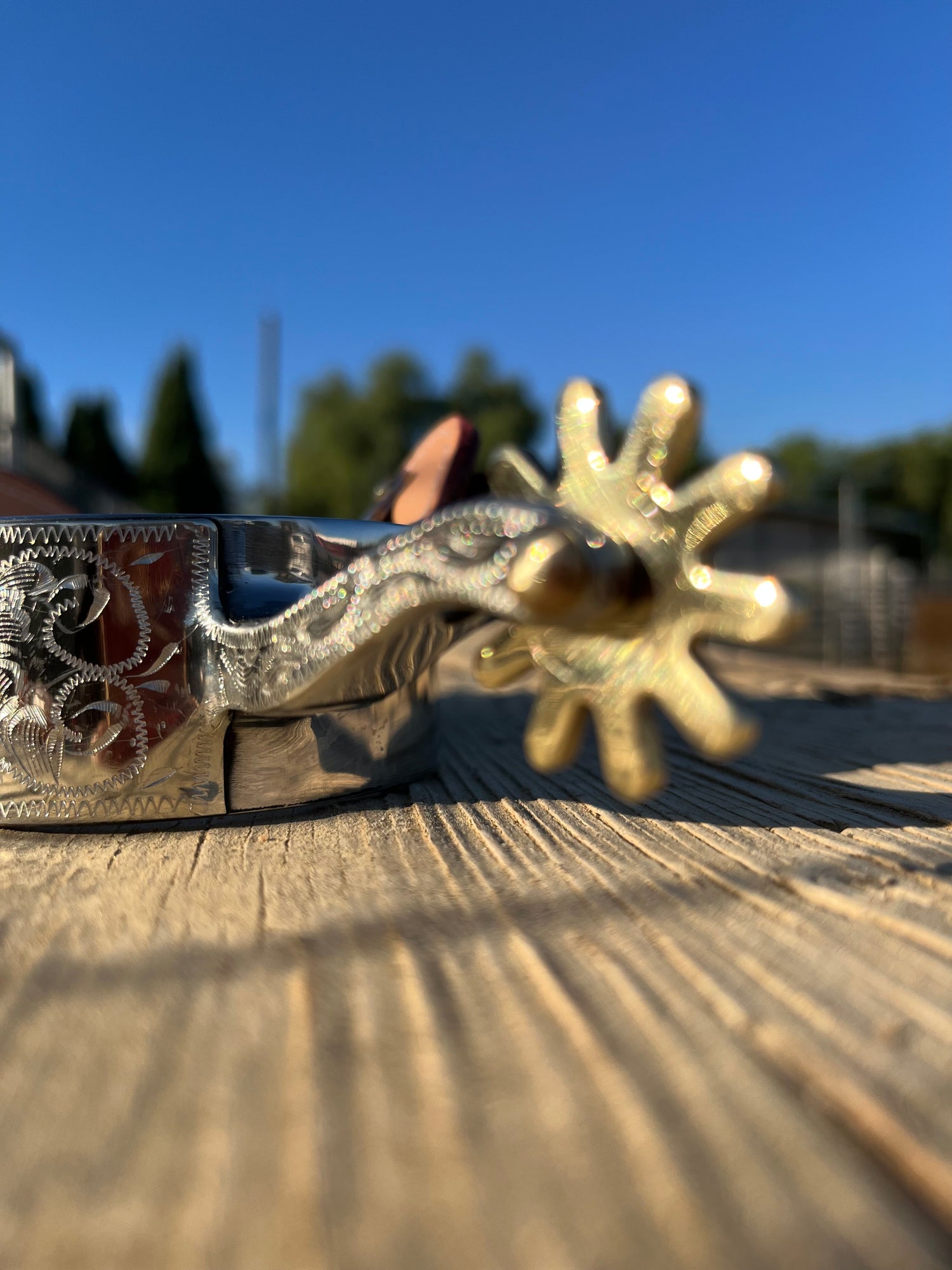 ESPUELAS PERSONALIZADAS.ESPUELAS DE ESPIGA LARGA PERSONALIZADAS. CHAPIADAS EN ORO. ESPIGA ENDIAMANTADA. MAS INFO AL (949) 205 8188