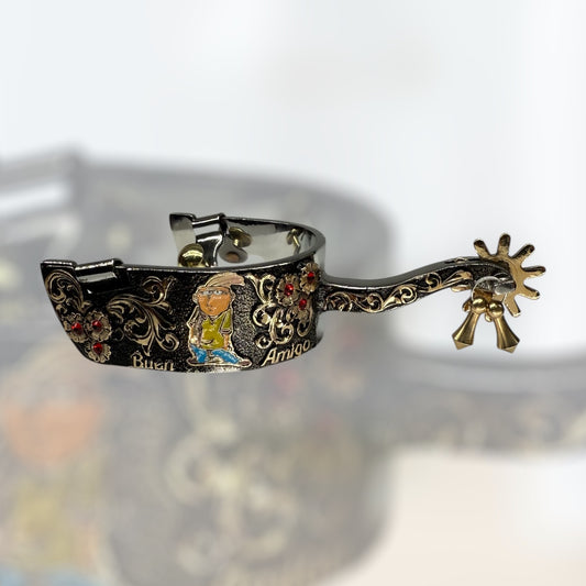 ESPUELAS PERSONALIZADAS.ESPUELAS DE ESPIGA LARGA PERSONALIZADAS. CHAPIADAS EN ORO. ESPIGA ENDIAMANTADA. MAS INFO AL (949) 205 8188
