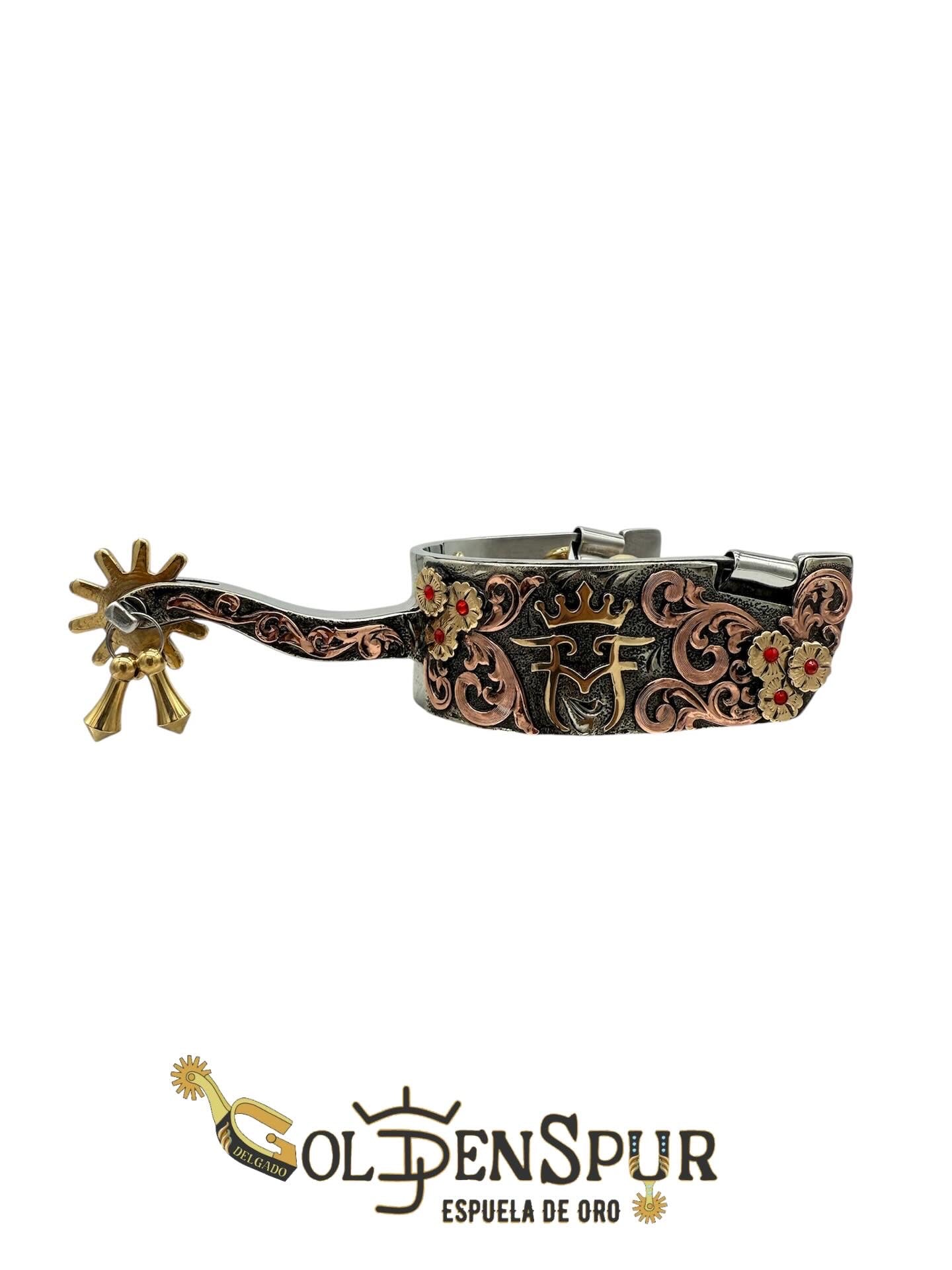 Tuvimos la oportunidad de trabajar para el Rancho de Mary, creando una espuela personalizada especialmente diseñada para una competencia de piales de cordero. Esta pieza combina funcionalidad y estilo, fabricada en acero inoxidable para mayor durabilidad, con un diseño americano de espiga larga que aporta precisión y elegancia.